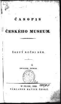 Časopis Českého Museum, (abreviado Cas. Ceského Mus.),[1] fue una revista con ilustraciones y descripciones botánicas que fue editada en Praga. Se publicaron los números 5-28, en los años 1831-1854. Fue precedida por Casopis Spolecnosti Vlasteneckého Museum y reemplazada por Casopis Musea Králavstvi Ceského, Oddil Prírordovedny.