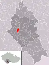 Se encuentra ubicada en el centro-sur de la región, en la zona de la selva de Bohemia, a poca distancia al sur de la ciudad de Praga, de la orilla del río Moldava —el más largo del país, afluente del río Elba— y al norte de la frontera con Austria.[1]