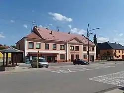 Se encuentra ubicada en el sur de la región, sobre la zona suroriental de los montes Sudetes, a poca distancia de la orilla del río Morava —un afluente izquierdo del Danubio— y de la frontera con las regiones de Moravia-Silesia y Zlín.[1]