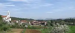 La localidad está situada a 11,5 km de la frontera con Italia cuyo paso internacional es el de la ciudad de Gorizia/Nova Gorica.
