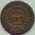 2 Dong 1946 Cu+Zn Hồ Chí Minh - CHU TICH HỒ CHÍ MINH - año de acuñación HAI ĐONG - Estrella roja - Ramas de olivo - VIET-NAM DAN-CHU CONG-HOA