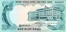 El Banco de Vietnam (Ngân-Hâng Viêt-Nam) emitió billetes en denominaciones de 10, 20 y 50 xu, 1, 2, 5, 10 y 50 dong, todos fechados en 1966.