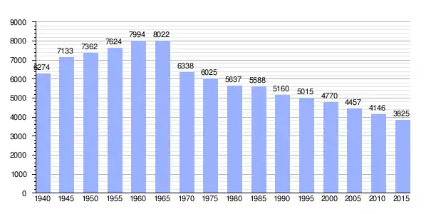 Gráfica de evolución demográfica de Ōkuwa entre 1940 y 2015 |