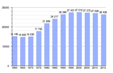 Gráfica de evolución demográfica de Ōra entre 1960 y 2015 |
