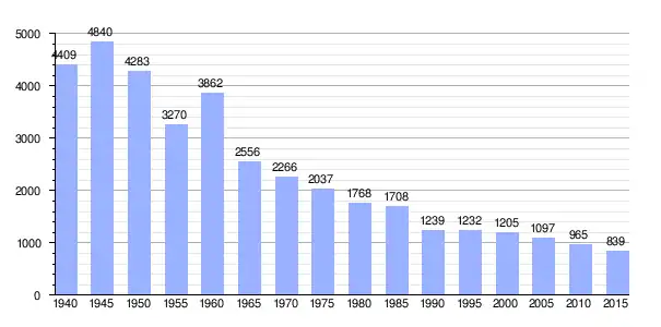Gráfica de evolución demográfica de Ōtaki entre 1940 y 2015 |
