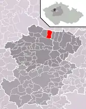 Se encuentra ubicada al noroeste de la región y de Praga, a poca distancia al norte del río Berounka —un afluente izquierdo del río Moldava—, y cerca de la frontera con la región de Ústí nad Labem.[1]