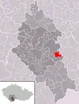 Se encuentra ubicada en el centro-sur de la región, en la zona de la selva de Bohemia, a poca distancia al sur de la ciudad de Praga, de la orilla del río Moldava —el más largo del país, afluente del río Elba— y al norte de la frontera con Austria.[1]