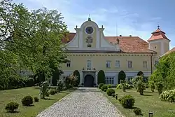 Se encuentra ubicada al sureste de la región, cerca de la orilla del río Morava —un afluente izquierdo del Danubio—, de la frontera con la región de Zlín y con Eslovaquia, y a poca distancia al sureste de la ciudad de Brno.[1]