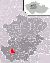 Se encuentra ubicada al noroeste de la región y de Praga, a poca distancia al norte del río Berounka —un afluente izquierdo del río Moldava—, y cerca de la frontera con la región de Ústí nad Labem.[1]