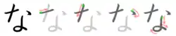 Existe una versión hentaigana de な, , que proviene del kanji 奈.