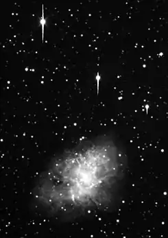 ![]() El asteroide Fortuna cerca del centro de la imagen, por encima de la nebulosa del Cangrejo. | ||||||