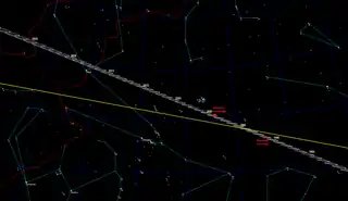 ![]() Chaos se mueve de oeste a este (de derecha a izquierda) a través del cielo, descubierto en Tauro en 1998, y con precovery en 1991. |