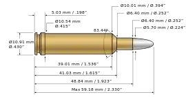 ![]() Esquema de un cartucho .224 Weatherby Magnum. | ||