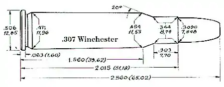 El .307 Winchester fue introducido al mercado por Winchester en el año1982 para competir con el .300 Savage, a ser utilizado en un rifle de palanca-rifle de palanca equipado con un cargador tubular. Dimensionalmente, es casi idéntico al más común .308 Winchester, difiriendo en el grosor de la pared del casquillo y el culote anillado.
