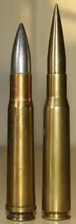 - Un cartucho más pequeño con núcleo de tungsteno disparado desde una vaina aproximadamente del tamaño de los cartuchos Boys