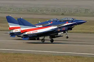 ![]() Dos Chengdu J-10 del equipo acrobático "1º de agosto" | ||