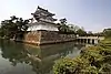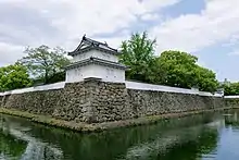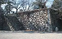 - Esta obra contiene una traducción derivada de «100 Fine Castles of Japan» de Wikipedia en inglés, publicada por sus editores bajo la Licencia de documentación libre de GNU y la Licencia Creative Commons Atribución-CompartirIgual 3.0 Unported.