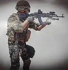 Cada operador está equipado con un arma principal (fusil de asalto), una pistola y, además, diferentes tipos de granadas (de fragmentación, de humo, cegadoras, etc.).