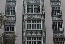 La fachada principal que da a la calle 57 consta de cinco tramos verticales, que tienen ventanas de metal y están separados por pilares de ladrillo. Las tramos más occidental, central y oriental son más anchas y se alternan con dos tramos más estrechas. La fachada trasera está realizada en ladrillo.[12]