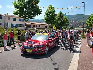 El pelotón rodando durante la neutralización al inicio de la etapa en Céret | ||||||||||||||||||||||||||||||||||||||||
