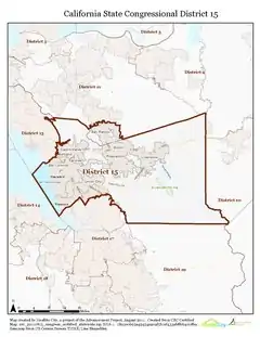 ![]() Ubicación de 15.º distrito congresional de California | ||