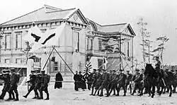 ![]() Soldados desfilando frente a su cuartel general, Okayama. | ||