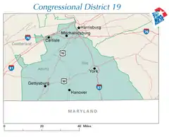 El 19.º distrito congresional se encontraba ubicado en las coordenadas 39°48′26″N 76°59′5″O.