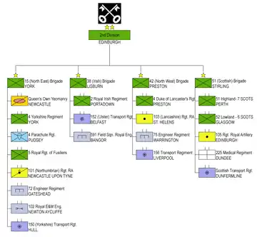 La división estuvo asociada con el del norte de Inglaterra. Su insignia, las Llaves en Cruz de San Pedro, era originalmente parte del escudo de armas de la Diócesis de York y fue adoptada antes durante la Primera Guerra Mundial. Fue desmantelada el 1 de abril de 2012.