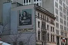 El muro este, hecho de ladrillo, es visible desde la plaza hacia el este.[18] Un letrero que anuncia Lee's Art Shop, un antiguo inquilino,[20] está pintado en la pared este.[18]