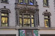 En el diseño original, la entrada central en el primer piso contenía una escalinata, con ventanas de dos partes a cada lado.[19] El anexo también tenía originalmente un par de ventanas a nivel del suelo. El primer piso fue revestido de piedra durante una renovación de 1918, y las ventanas originales se colocaron con grandes ventanales.[18] En el segundo piso, en el tramo central del edificio original, es un dosel conopial arco con una ventana tripartita y relieves ornamentales en el tímpano. Las otras ventanas del segundo piso tienen ventanas rectangulares, que están rematadas por dinteles en forma de arcos conopiales. En el tercer piso, el tramo central original tiene una ventana tripartita, mientras que las otras ventanas tienen ventanas rectangulares con pequeños alféizares y dinteles decorativos. En el diseño original, una hilera de bandas moldeada hecha de piedra se extendía horizontalmente entre el tercer y cuarto piso.[16][18] Las ventanas rectangulares del cuarto piso se ampliaron en 1939 para que se extendieran hacia abajo en el curso de la banda. Hay una cornisa de piedra con modillón por encima de la cuarta planta.[18]