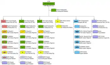 La 29.ª División de Infantería ejerce el entrenamiento y la supervisión de la preparación de las siguientes unidades, que no son orgánicas: hay una Sede de la División y una de los diferentes Batallones, un Equipo de Combate de la Brigada Blindada, dos Equipos de Combate de la Brigada de Infantería, una Brigada de Aviación de Combate y una Brigada de Artillería de Campaña.