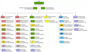 Con motivo de una reforma que pretendía reducir los efectivos del Ejército de los Estados Unidos en diciembre de 1994, las unidades pertenecientes a la 3.ª División de Infantería pasaron a ser la nueva 1.ª División de Infantería, a la vez que las unidades de la 24.ª División de Infantería pasaron a ser la nueva 3.ª División de Infantería, estacionada en Fort Stewart, en Georgia, formando parte del XVIII Cuerpo Aerotransportado.