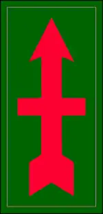 La 32.ª División de Infantería fue formada a partir de unidades de la Guardia Nacional del Ejército de Wisconsin y Michigan y luchó principalmente durante la Primera Guerra Mundial y la Segunda Guerra Mundial. Dadas sus raíces con la brigada del hierro de la guerra civil americana, las unidades ancestrales de la división llegaron a ser conocidas como Iron Jaw Division (la división de la mandíbula de hierro). Durante el combate en Francia, en la Primera Guerra Mundial, pronto adquirió de los franceses el apodo Les Terribles, haciendo referencia a su fortaleza en el avance sobre un terreno donde los demás aliados no podían cruzar.[1] Fue la primera división aliada en perforar la línea Hindenburg alemana de defensa.[1] De esta manera, la 32.ª decidió cual sería su insignia de hombro; una línea atravesada por una flecha roja, que representaba, según ellos, su tenacidad en la perforación de la línea enemiga. A continuación, se hizo conocer como la Red Arrow Division.[2]