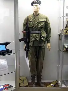 El batallón utilizó el mismo camuflaje de las tropas del ejército regular, pero el uniforme estaba adaptado a las demandas de la unidad. Había también elementos de equipamiento especializados como una mochila de mayor tamaño, cuchillo paracaidista, chaleco de combate, abrigo de lluvia, botas, y casco. La insignia paracaidista era naranja y se exhibía en su cuello, hombro y boina. En combate llevarían una boina gris.