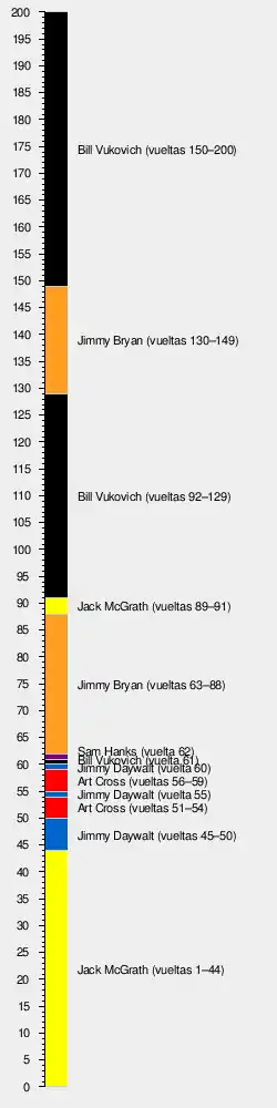 - Art Cross (120), Jimmie Davies (30), Johnnie Parsons (22), Andy Linden (17) y Sam Hanks (11) coche compartido #45.