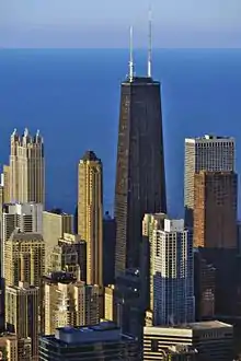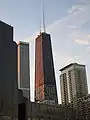 El 875 North Michigan Avenue (nombrada antiguamente como John Hancock Center) es un rascacielos de cien plantas y 344 metros de altura[7] situado en el 875 North Michigan Avenue de Chicago, Estados Unidos. Fue construido bajo la supervisión de Skidmore, Owings and Merrill,[7] y sus diseñadores principales fueron Bruce Graham y el ingeniero estructural Fazlur Rahman Khan.[8] Cuando se coronó, el 6 de mayo de 1968,[9] se convirtió en el segundo edificio más alto del mundo y el más alto fuera de Nueva York. Actualmente es el quinto más alto de Chicago, tras la Torre Willis, el Trump International Hotel and Tower, la Vista Tower y el Aon Center. Si se incluye su antena, tiene una altura total de 459 metros.[10] El edificio contiene oficinas y unas setecientas viviendas, así como restaurantes y espacio comercial. El edificio se llama así en honor a la John Hancock Mutual Life Insurance Company, promotora y ocupante original del edificio,[9] y recibe el apodo Big John ("Gran John").
