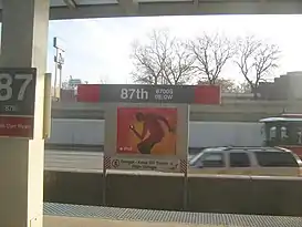 87th es una estación en la línea Roja del Metro de Chicago. La estación se encuentra localizada en 15 West 87th Street en Chicago, Illinois.[1] La estación 87th fue inaugurada el 28 de septiembre de 1969. La Autoridad de Tránsito de Chicago es la encargada por el mantenimiento y administración de la estación.