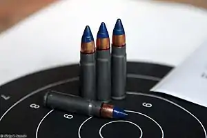 - SP-5 (7N8): El SP-5 (СП-5) (SP: Patrón Spetsialnyj, "Cartucho Especial") fue desarrollado por Nikolai Zabelin. Se trata de un cartucho que monta una bala encamisada (FMJ) convencional con núcleo de plomo, pero desarrollado para la precisión.