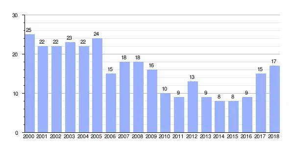 Gráfica de evolución demográfica de A Crus entre 2000 y 2018 |