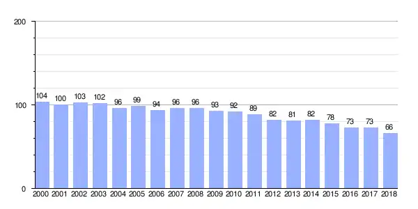 Gráfica de evolución demográfica de A Graña entre 2000 y 2018 |