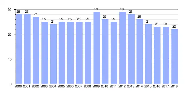 Gráfica de evolución demográfica de A Riva entre 2000 y 2018 |