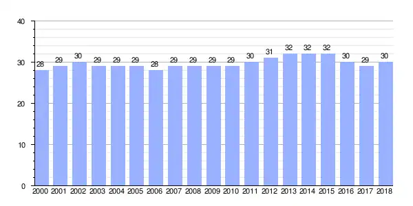 Gráfica de evolución demográfica de A Telleira entre 2000 y 2018 |