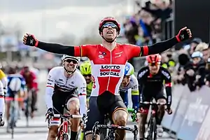 El ganador final fue Jens Debusschere tras ganar en el sprint a Bryan Coquard y Edward Theuns, respectivamente.[2]