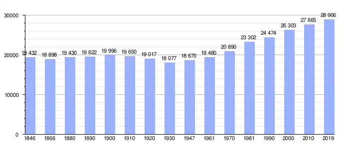 Todos los datos históricos relativos al actual municipio, el siguiente gráfico refleja su evolución demográfica, incluyendo municipios después de efectuada la fusión el 1 de enero de 1977.