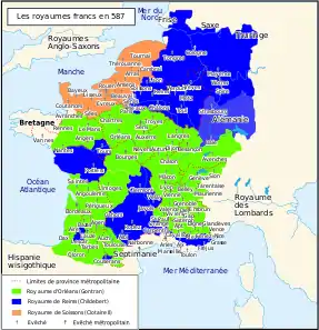 - Grégoire de Tours, Histoire des Francs, traduction Guizot, J.L.J Brière, Coll « les mémoires de France » Paris, 1825, Livre IX, Chapitre 40