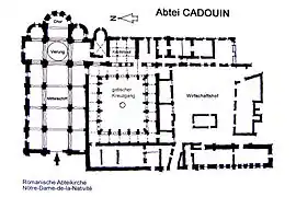 - Esta obra contiene una traducción derivada de «Abadia de Cadonh» de Wikipedia en catalán, concretamente de esta versión, publicada por sus editores bajo la Licencia de documentación libre de GNU y la Licencia Creative Commons Atribución-CompartirIgual 3.0 Unported.