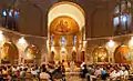 La actual iglesia es un edificio circular con diferentes nichos que contienen altares y un coro. Dos escaleras espirales bajan a la cripta, el lugar descrito como el de la dormición de la Virgen María y al órgano y la galería desde donde se accede a dos de las cuatro torres de la iglesia.
