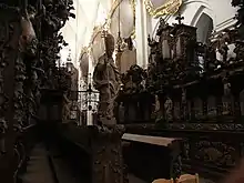 Las sillerías barrocas son unos objetos muy bellos de la iglesia. Son una obra sobresaliente de la talla en madera de Silesia. El tallo de la sillería del coro, de estilo renacentista, data del año 1567; la decoración está ricamente tallada con acantos y conchas. Los respaldos, decorados con 36 bajorrelieves que representan escenas de la vida de Cristo, fueron realizados en madera de tilo. Después de 1700, fueron añadidos los palcos del abad y del prior, y el conjunto se enriqueció con cuatro pares de estatuas exentas de san Gregorio Magno, Eugenio III, san Jerónimo, Conrado de Poitiers, san Benito y san Bernardo.