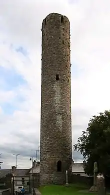 - La Torre circular: La torre tiene una altura de treinta metros y data del siglo X. Hoy en día carece del tejado cónico. La construcción data de al menos 1076, año en el que el rey de Tara, Muircheartach Maelsechnaill fue asesinado en ella.