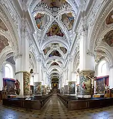 Destaca el altar mayor barroco, realizado por Johann Andreas Wolf en 1712, tras doce años de diseño y preparación. Los ángeles de Johann Michael Zürn el joven, que se arrodillan en los numerosos altares laterales, también son ejemplos impresionantes del barroco austriaco.